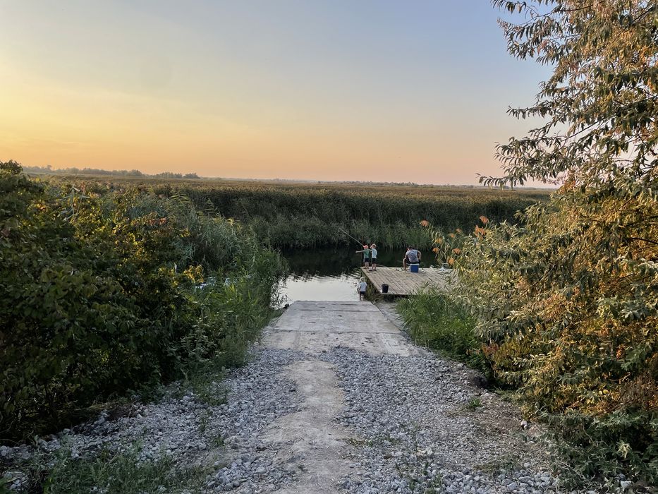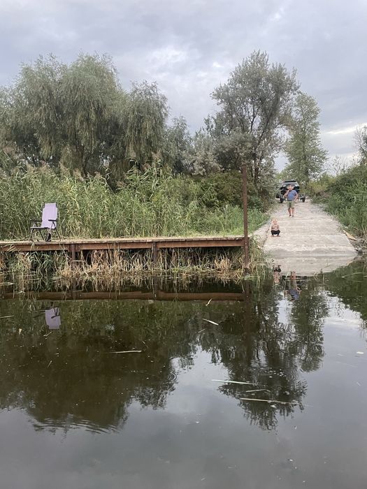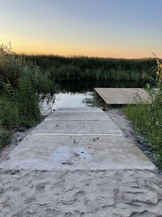 Ділянка з усіма комунікаціями, навіс для човнів, пірс, спуск для човнів, охорона.