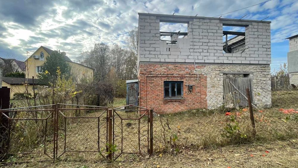 Ділянка з недобудовою 120 м.кв. у м. Хмельницький, Електронніка 1; Терміново продається земельна ділянка з недобудовою від власника масив Електронніка 1 (район Катіону, Шаровечка). Ділянка ~7 соток у приватній власності є кадастровий номер. В межах міста, після добудови можлива міська прописка. Будинок 2 поверхи ~120м.кв. Фундамент 1м., 2 армопояси, 1 - поверх камінь, 2 - поверх піноблок, перекриття не залите (встановлені балки), без даху, вікон та внутрішніх робіт. Є невеликий погріб. Світло підведене, криниця на подвір'ї, газ по дорозі. Також посаджений сад. Ціна 33 тис.дол.