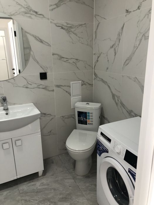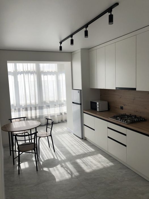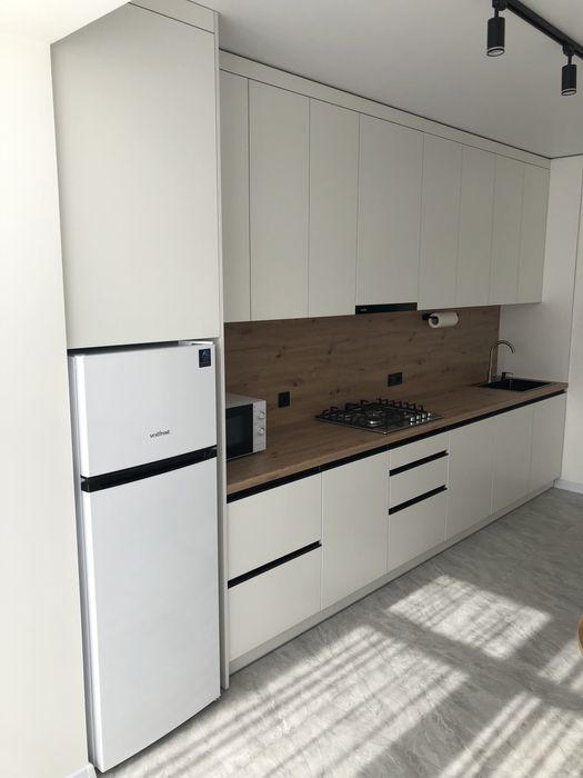 Кухня обладнана холодильником, мікрохвильовою піччю, газовою варильною поверхнею та витяжкою. У квартирі також є пральна машина, телевізор зі Smart TV та оптоволоконний інтернет. Для комфорту — індивідуальне опалення (котел) та підігрів підлоги.