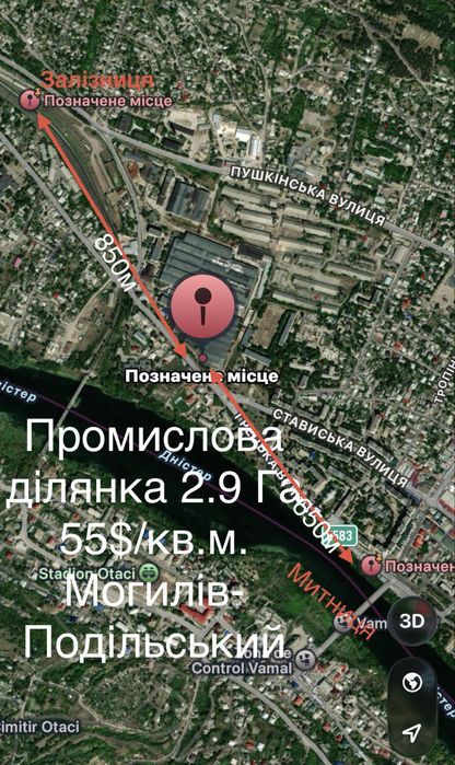 Промислова ділянка 2.9 га біля митниці та залізниці - 55$/кв.м.; Продаж промислової земельної ділянки в м. Могилів-Подільський.