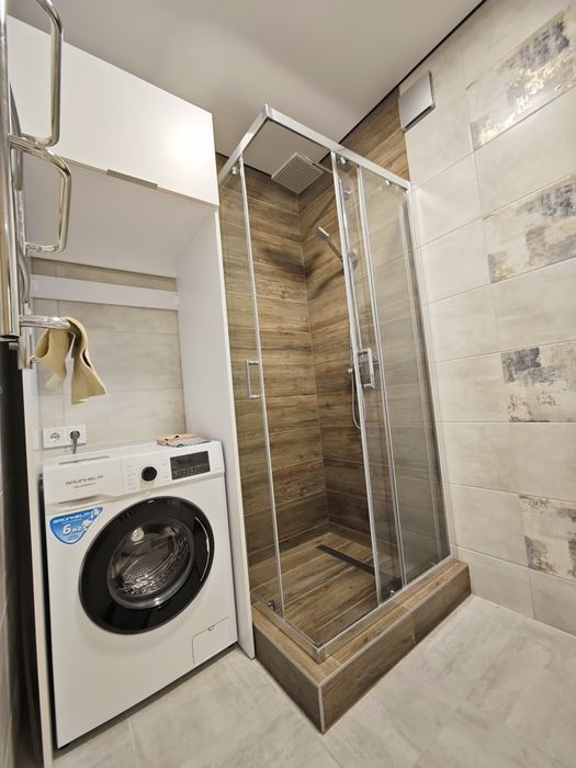 Перший поверх, високий цоколь під комерцію, автономне опалення, тепла підлога. Ванна : душ. Нова техніка: пралка, сушка, холодильник, індукційна плита, мікрохвильова піч, тв.