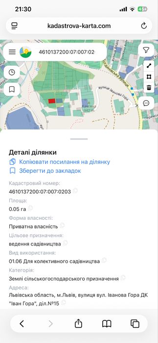| Земельна ділянка: |