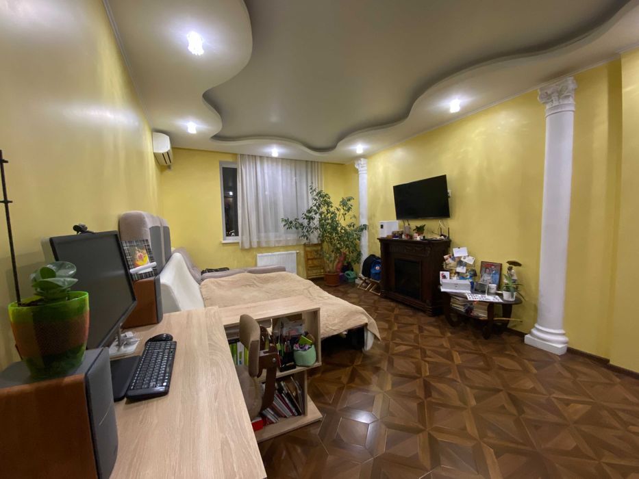 Дуже простора затишна квартира (50 кв.м): велика кімната (20 кв.м) з комфортним розкладаним диваном, робочим місцем, електричним каміном, кондиціонером і телевізором, простора кухня (12 кв.м) з повним комплектом меблів і техніки — холодильник, плита і духовка, посудомийна машина, простора ванна кімната (4,5 кв.м) з великою ванною, є пральна машина та бойлер, гардеробна кімната, балкон з гарним видом, розкладаним столиком та високими стільцями.