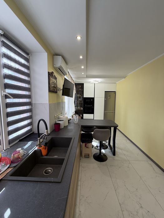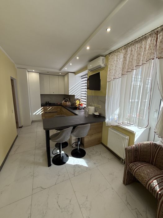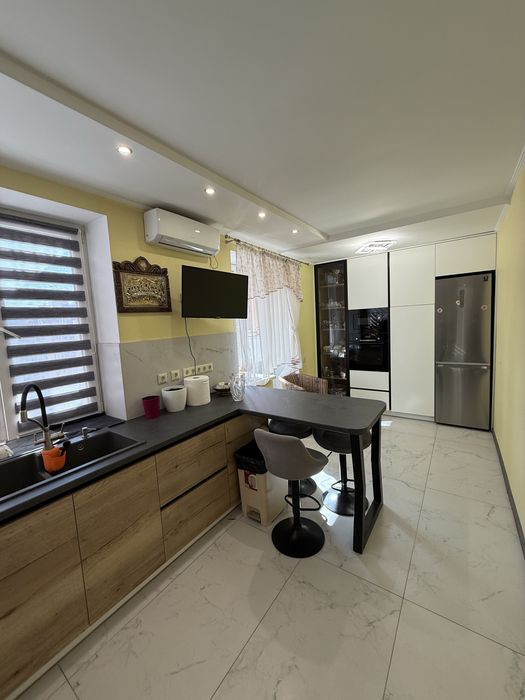 Квартира виконана з капітальним ремонтом, повністю укомплектована якісними меблями та сучасною побутовою технікою BOSCH. Раціональне і зручне планування передбачає на першому рівні простору кухню-столову з заскленим балконом, з якого відкривається приголомшливий вид на Храм Свято-Пантелеймонівського монастиря та парк Феофанія, санвузол із душовою кабіною, комірка та продумані вбудовані системи зберігання. Другий рівень складається: з трьох окремих кімнат, вітальня з діючим каміном, дві спальні, гардеробна та санвузол із ванною. В кожній кімнаті ТВ та кондиціонер.