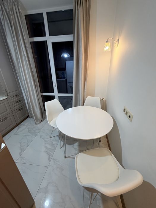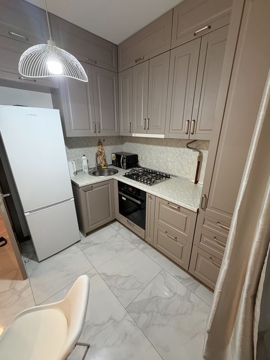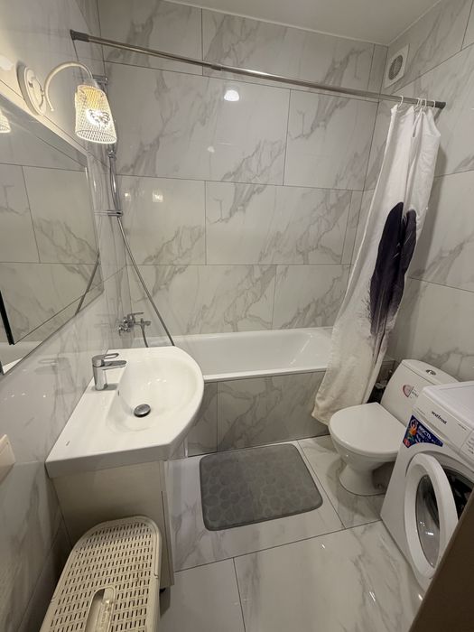 Новий, якісний ремонт, скрізь підігрів підлоги, керамограніт. Білі стіни та меблі на замовлення. Повноцінна ванна та двоспальне ліжко. Відкритий балкон. Холодильник, газова поверхня, духова шафа, мікрохвильова піч, інтернет, телевізор, пилосос.
