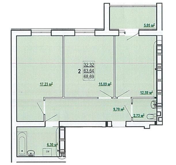 2 кімнатна квартира — 65 кв.м