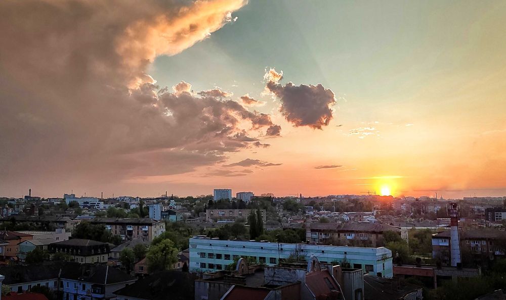 Балкон - французький, з неймовірним краєвидом на захід сонця.