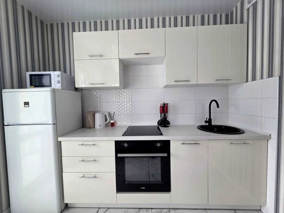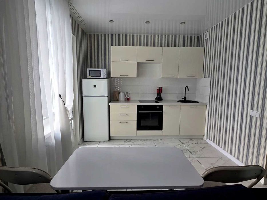 Квартира укомплектована всіма необхідними меблями та технікою. Продумане планування спальної зони з двоспальним ліжком і вбудованою шафою. Кухня з меблями. Встановлений інверторний кондиціонер. Є балкон/лоджія, ванна кімната, гардеробна.