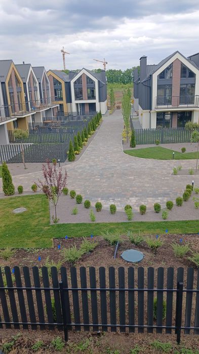 Внутрішній двір огороджений металевим парканом 1,5 м. Є паркомісце перед будинком. Додатково можна облаштувати ще 2 паркомісця у власному дворі вздовж будинку. На території комплексу є гостьові паркомісця.