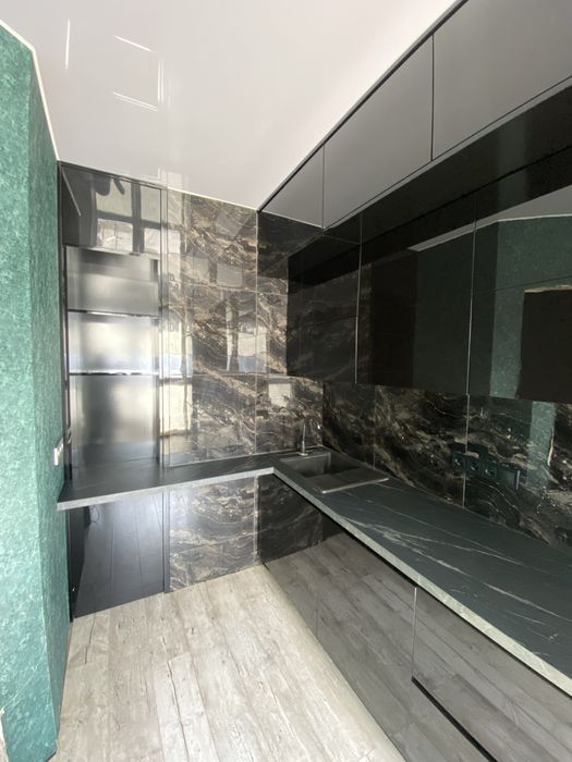 • Якісні матеріали: глянцеві фасади, кам’яна текстура стін і стільниці