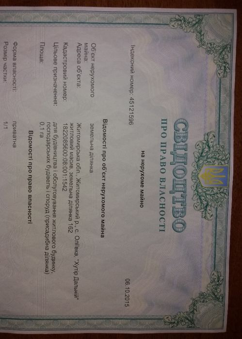 | Земельна ділянка: |