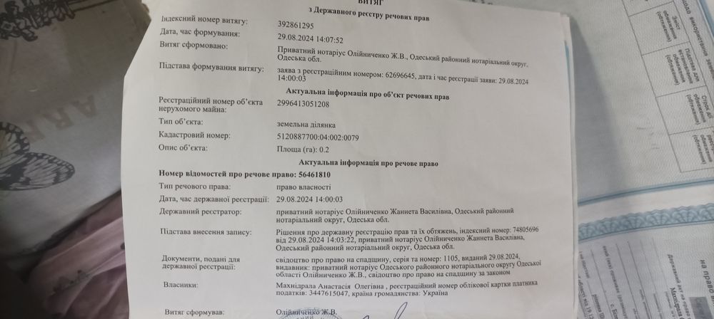 | Земельна ділянка: |