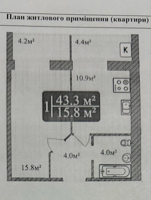 • Площадь — 43 м²