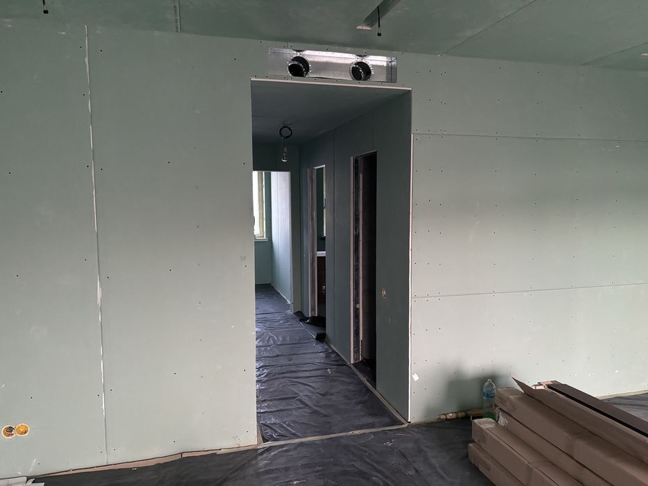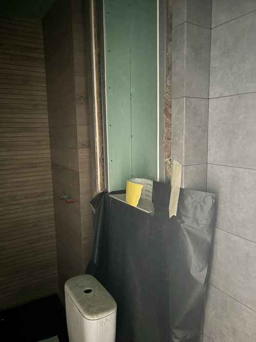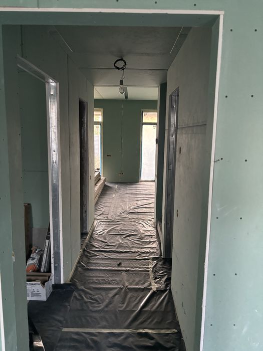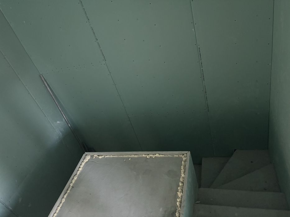 Виконані роботи зі встановлення перестінків, розведено опалення, вода і каналізація.