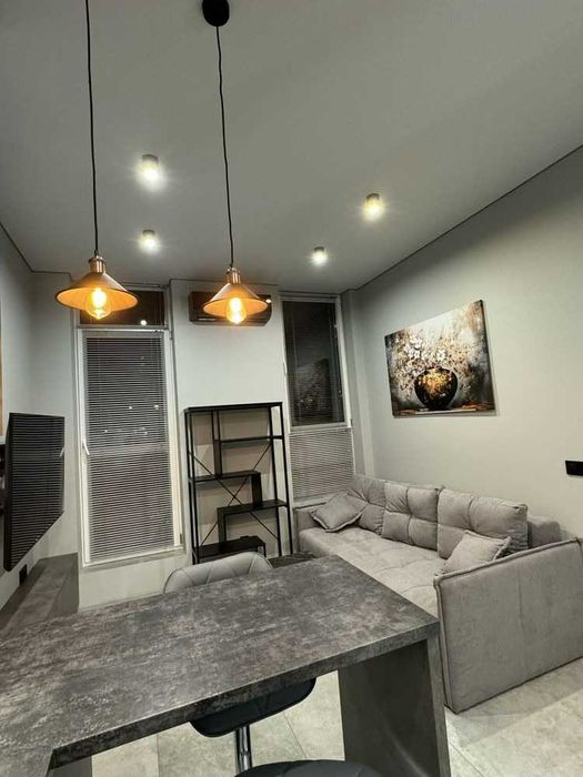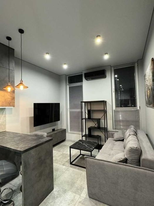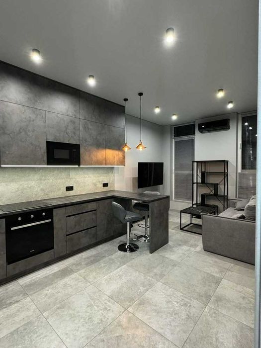 Квартира світла та простора, з сучасним ремонтом. Планування: кухня-студія та окрема спальня. Є панорамні вікна та французький балкон.
