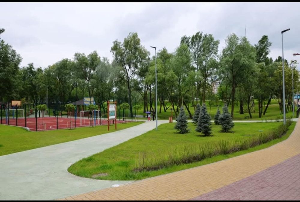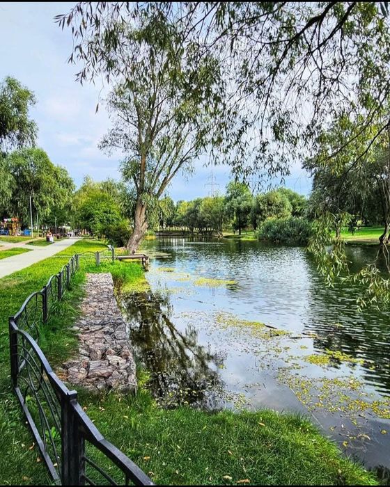 Деснянський масів(на самому початку Троєщини) будинок зразу коло парку та озер, до р. Десьонка 15хв пішки.. Гарна транспортна розв'язка. Поруч школи та садочки.