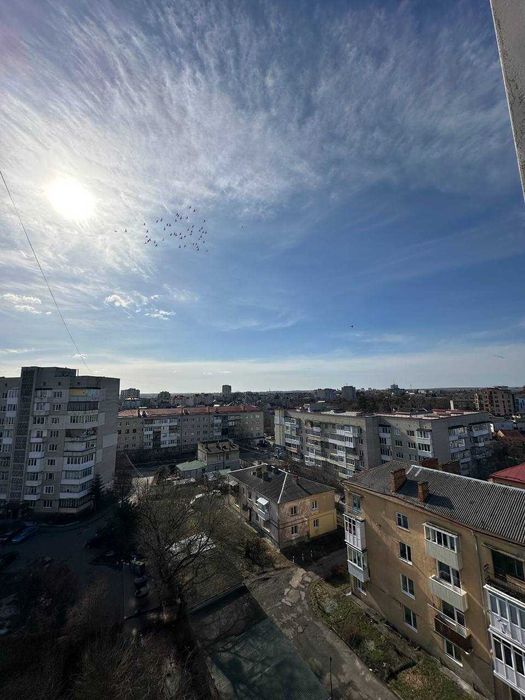 Квартира розташована на 9 поверсі з 9-поверхового цегляного будинку. Над стелею — технічний поверх. Бонус: чудовий вигляд з вікна на панораму міста.