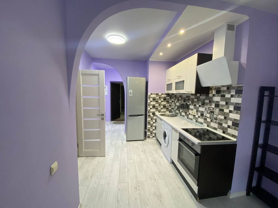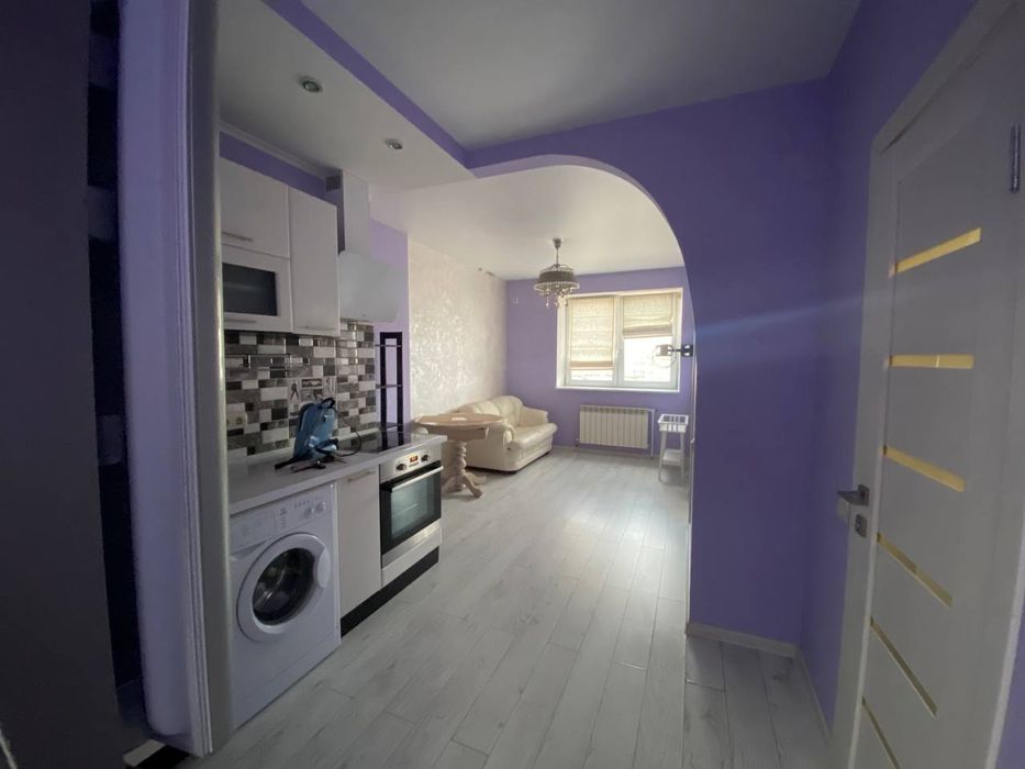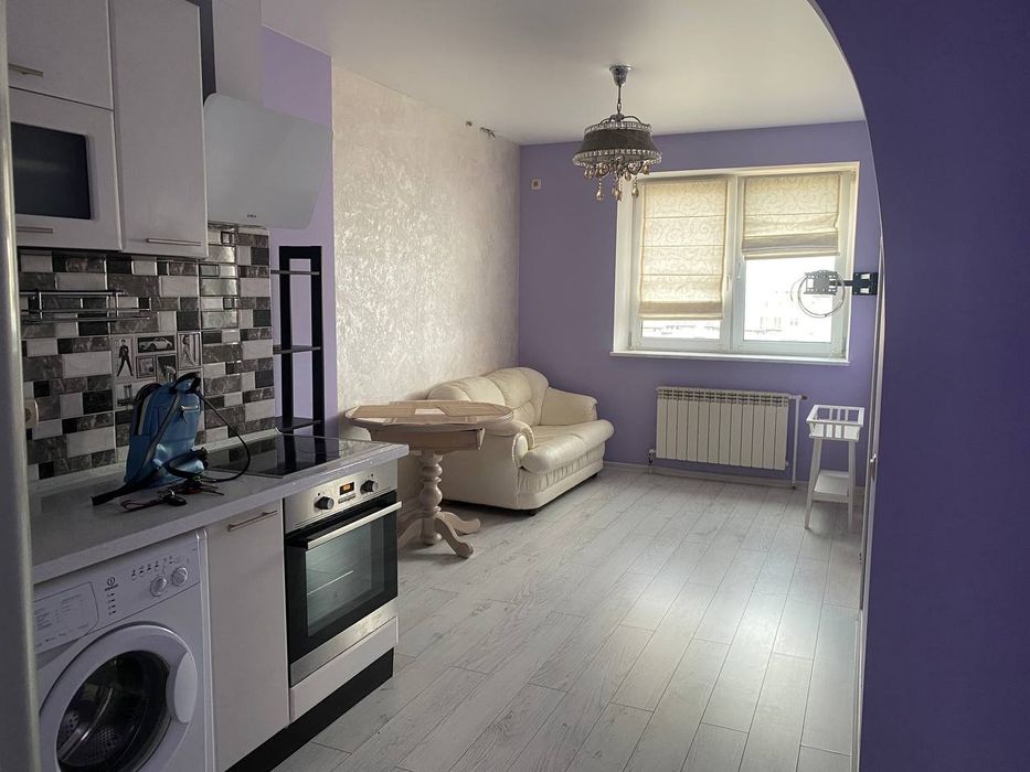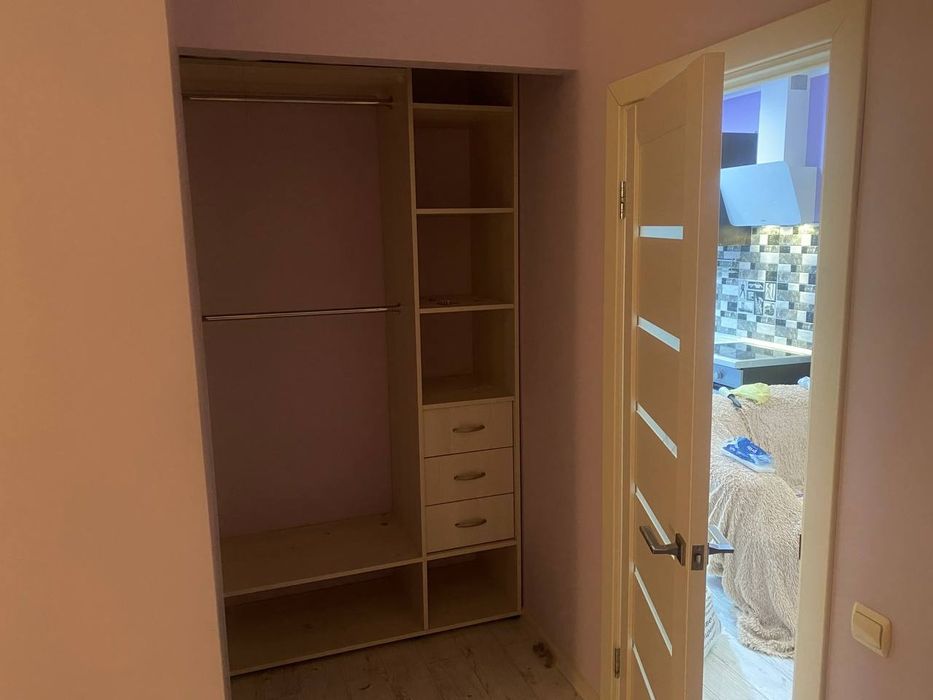 Квартира з кухнею студією, дуже зручне планування, відкритий простір між залою і кухнею. Готуєш, дивишся телевізор:) Окрема спальня, де вистачить місця на велику кровать та зручне робоче мвсце. Просторний санвузол і велика (3кв) гардеробна при вході і велика шафа в спальні. Планування квартири - ідеальне для життя.