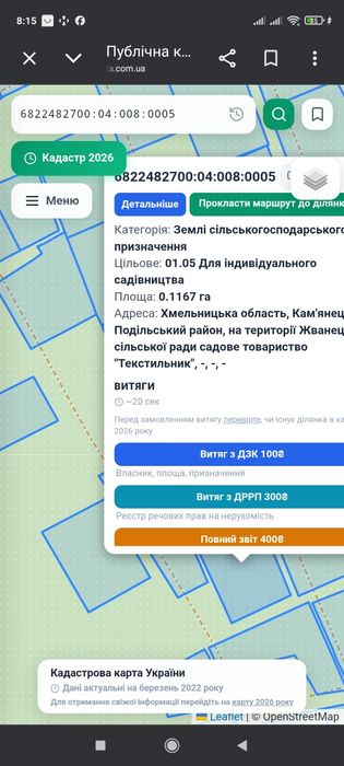 Документи в порядку, приватизована, є кадастровий номер. Знаходиться в дачному кооперативі,, Текстильник" с. Жванець. Кам'янець Подільський район. В кооперативі в деяких будинках проживають на постійній основі.