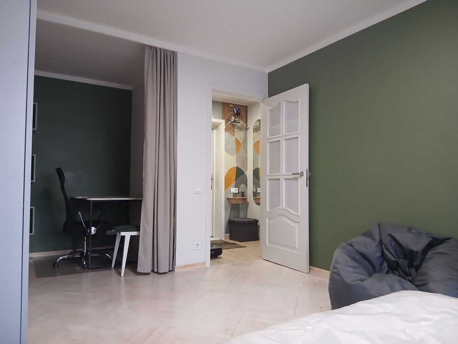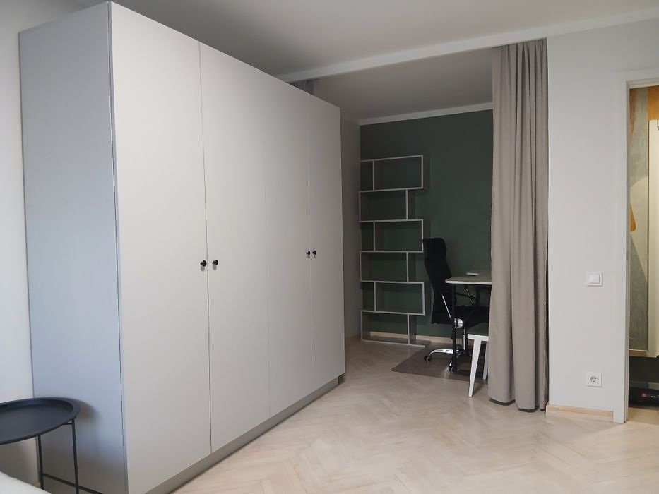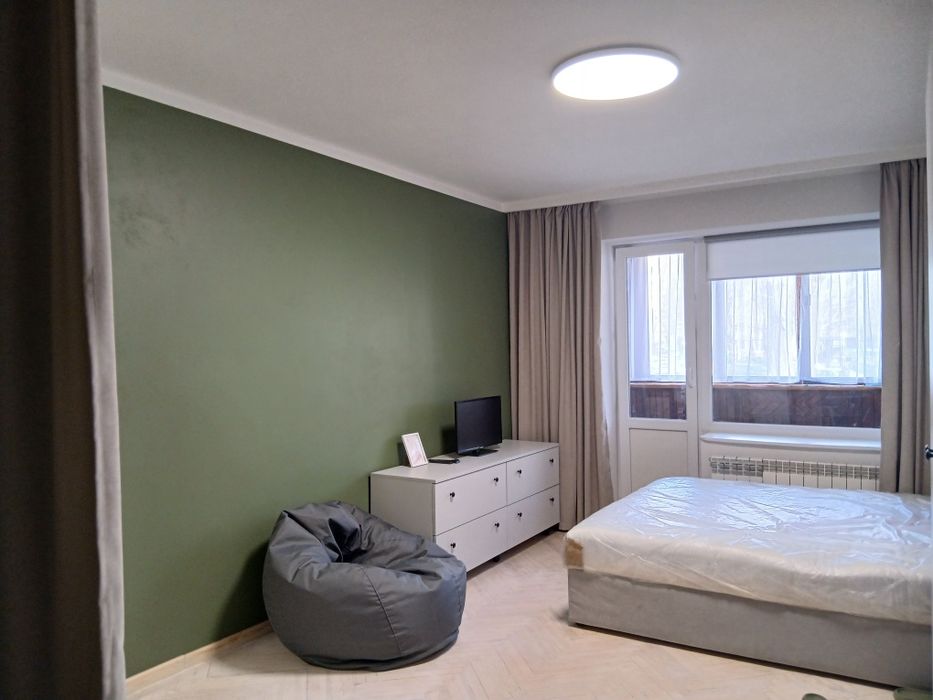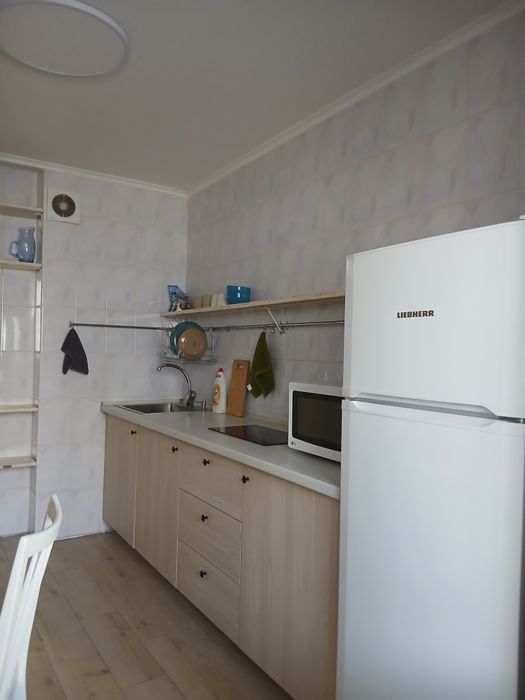 Полностью меблирована (двуспальная кровать, вместительный шкаф, рабочий стол, кухня) Бытовая техника -холодильник, стиральная машина, плита, бойлер. Рядом супермаркеты (Фора, АТБ), кафе, парковая зона, городская електричка. Для семейной пары или одного человека, без животных, без вредных привычек.