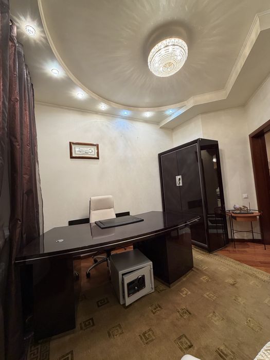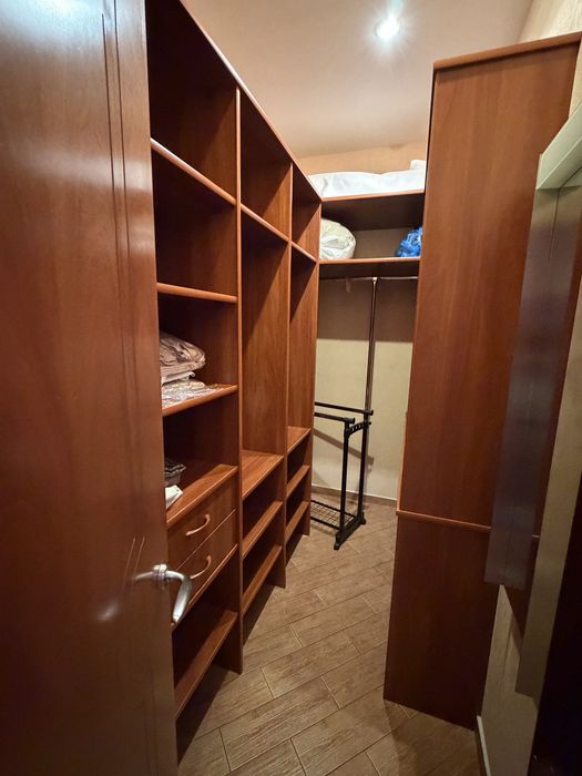 Выполнен качественный ремонт: натуральный паркет, многоуровневое освещение, аккуратный и тёплый интерьер. Установлена кожаная мебель, предусмотрено большое количество мест для хранения, есть отдельная гардеробная.