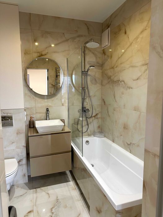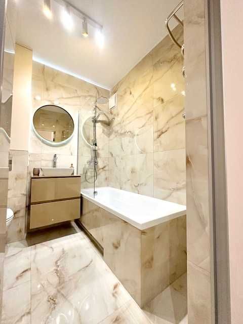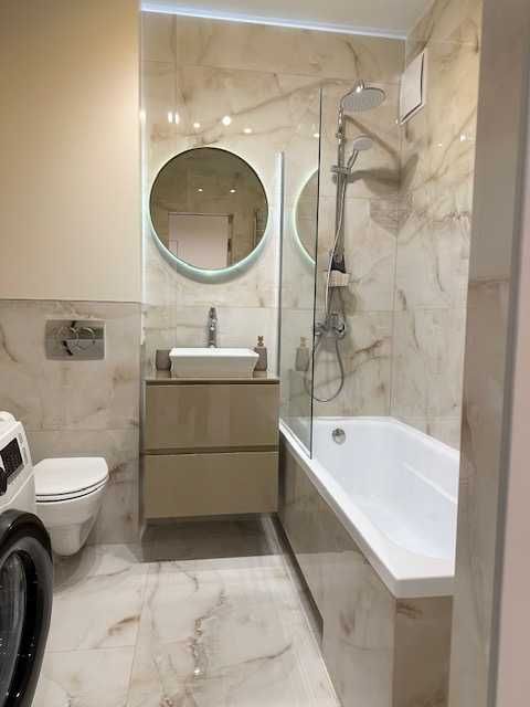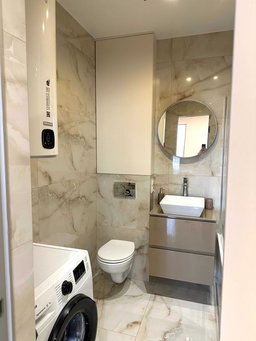 -У санвузлі: бойлер на 80л, змішувачі Grohe, якісна сантехніка (виробники Австрія, Німеччина), тропічний душ, ванна. Пральна машина Samsung, тепла підлога.