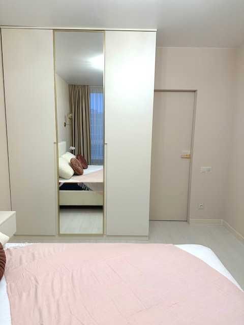 -У спальні ліжко із нішею для зберігання, дуже якісний та зручний ортопедичний матрац (1600х2000), гардероб, кондиціонер.