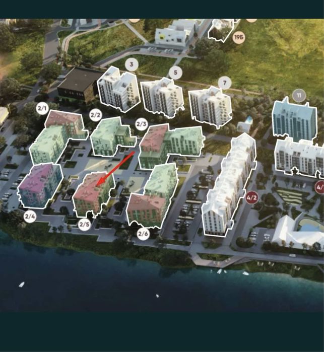 Квартира з ідеальним плануванням, кухня- студія з виходом на терасу з видом на озеро, та окрема спальня. Квартира 45,14 кв.м + 5 кв.м. які входять до тераси. Є ліфт. Здача будинку запланована на 2 кв. 2026 року. Продаж по переуступці.