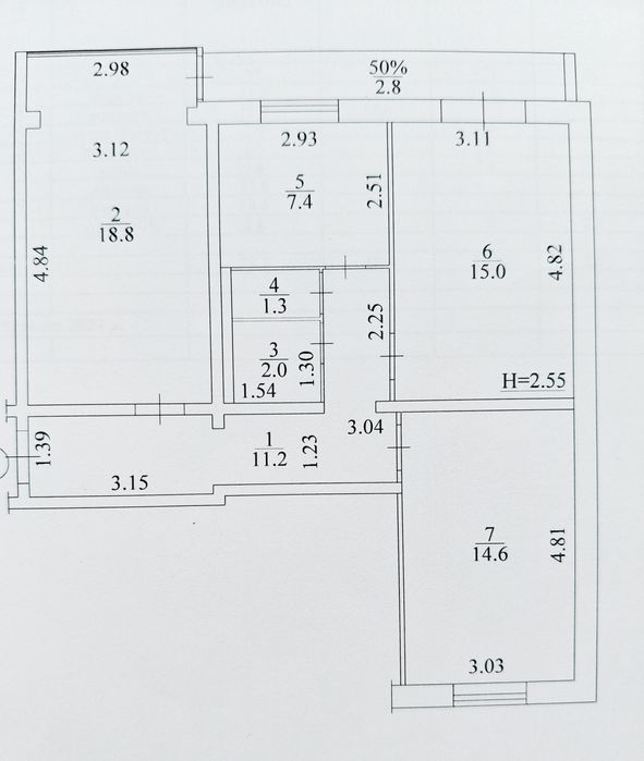 • три окремі просторі кімнати — 18,8 / 15,0 / 14,6 м²