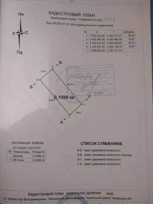 Кадастровий номер: 7124984500:01:002:0438