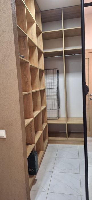 Есть вместительная гардеробная и шкаф .