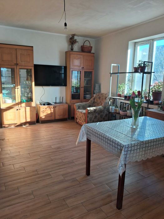 Будинок 115 кв.м зі зручностями Обухівський р-н; Продам будинок с. Переселення ( до центру м. Кагарлик 2,5 км). Будинок цегляний 1984 року на міцному бутовому фундаменті,без тріщин, загальною.площею 115 кв.м , жила 86 кв.м - 5 кімнат ( 3 окремі і 2 прохідні), кухня 16 кв.м.,два санузли, вода холодна /горяча в будинку,бойлер 100 л, газ в будинку ,є відвод під газовий котел і є газовий котел але відключений, опалення парове зробили від дров'яної печі з котлом,також можливо зробити газове опалення. Вікна поміняні на м/п, частково зроблений ремонт ,поміняна проводка. Є гараж з ямою, сарай,літня кухня ,до якої теж підведен газ,але потребує ремонту. Ділянка 57 сотих приватизована двома актами. Зручне розташування будинку - до залізничної станції 1,5 км ,до центру Кагарлика зі всією відповідною інфраструктурою 2,5 км. В селі є велике озеро зариблене, також школа, дитячий садок. До Києва м. Видубичі 70 км година їзди на маршрутці,до м. Обухів 35 км