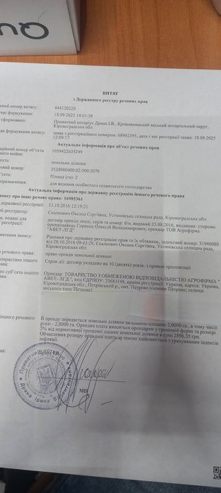 Земельна ділянка 2 га; Пропонується до продажу земельна ділянка площею 2 гектари в Кіровоградській області Олександрійський район.