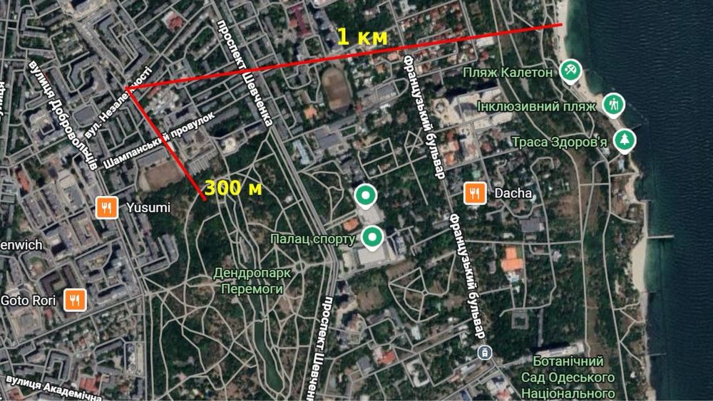 Пішки 15 хвилин до Аркадії. 300 метрів до Парку Перемоги.