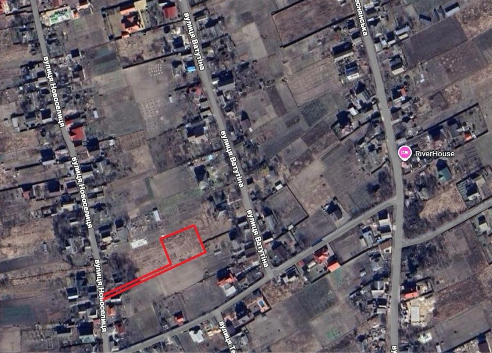 Ділянка розташована у самому селі в тихому житловому районі, між забудованими сусідами.