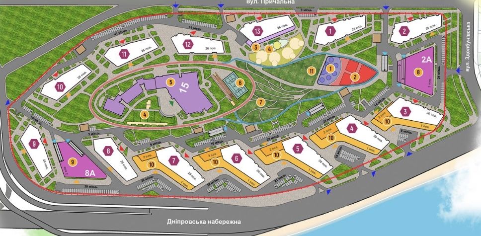 Житловий комплекс розташований у зручному районі: поруч паркінг, парк, магазини, кафе, спортивні майданчики, школи та садочки. Зручна транспортна розв’язка, прогулянкова набережна Дніпра.