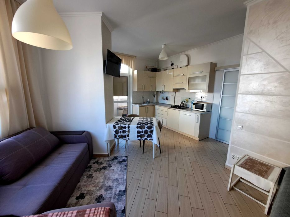 з індивідуальним опаленням , підігрівом підлоги, усіма меблями (нове ліжко з новим матрацом) та побутовою технікою ( холодильний, пральна машина, посудомийка, мікрохвильова, ел.чайник, тв, wifi. Є балкон, паркінг, дит.майданчик, консьєрж.