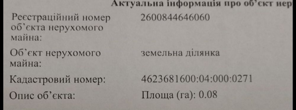| Земельна ділянка: |