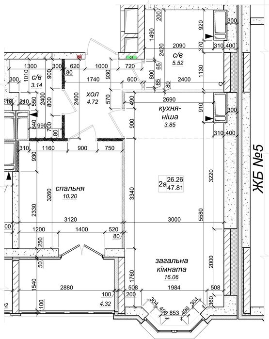 • Площа: 47,81 м²