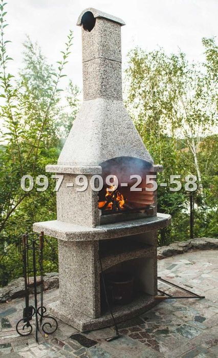 Окрема зона барбекю з видом обладнана сучасним мангалом і великим столом для компанії.