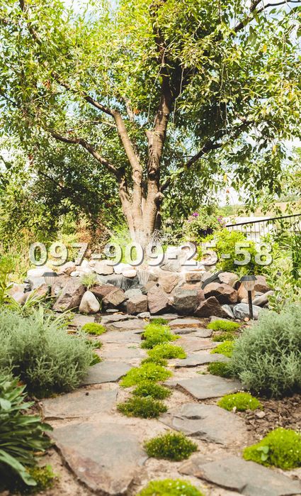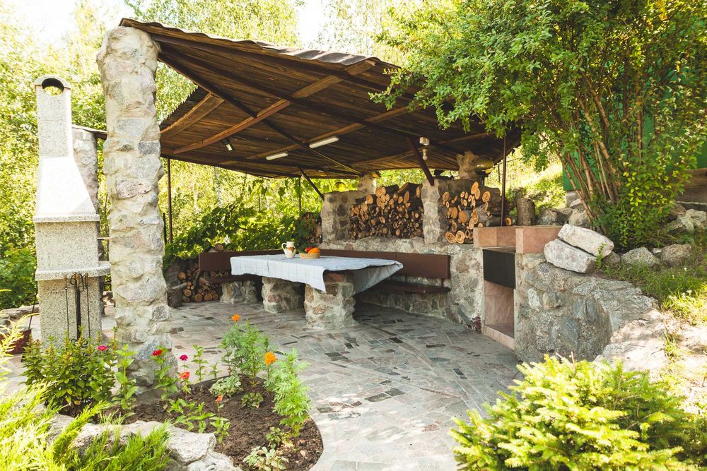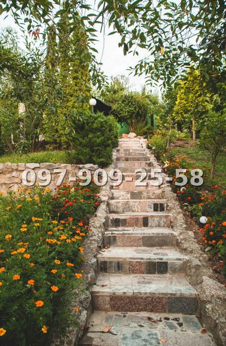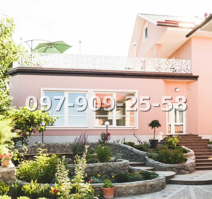 Будинок розташований на схилі пагорба, що відкриває гарні панорамні види та створює відчуття простору і приватності. Ділянка площею 23 сотки має продуманий ландшафтний дизайн і поділена на зони для відпочинку.