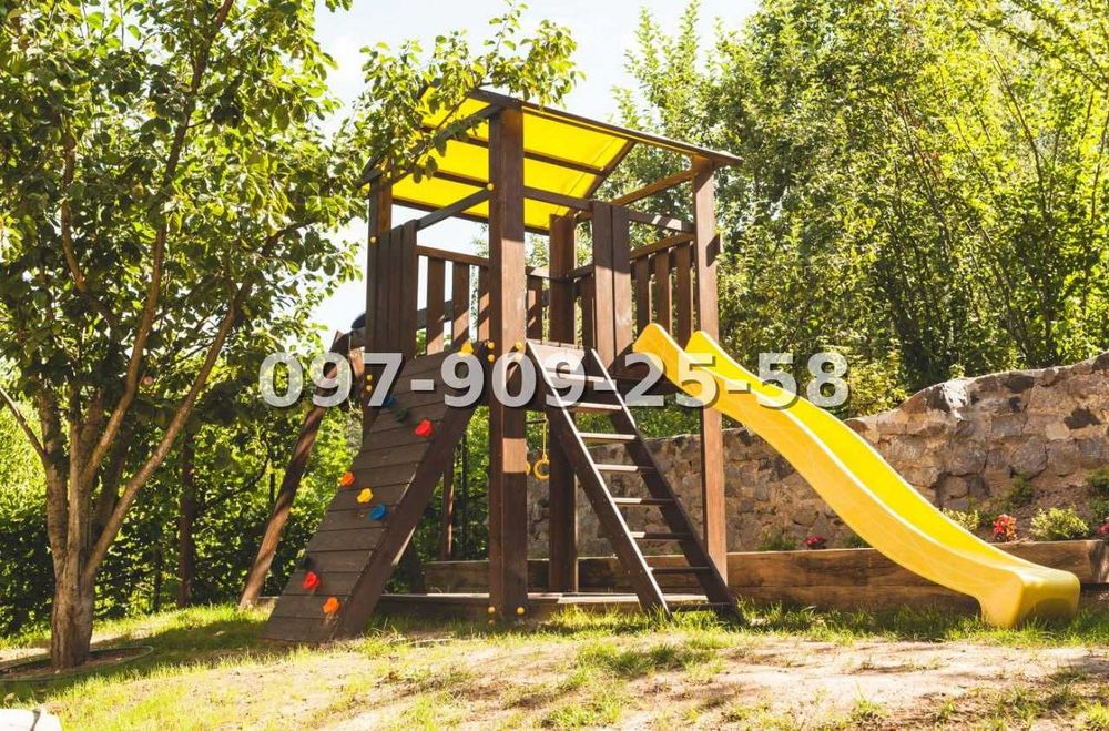 Для дітей облаштований безпечний ігровий майданчик, поруч — зона релаксу з гамаком.