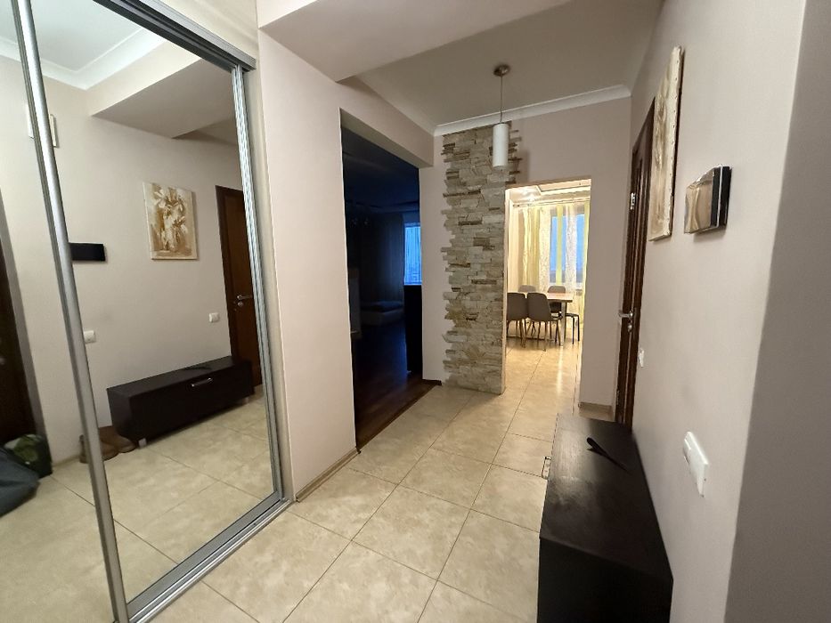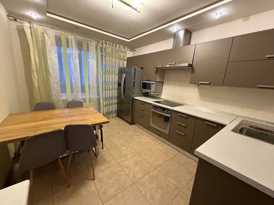 Кухня окрема, повністю укомплектована побутовою технікою: холодильник, посудомийна машина Bosch, пральна машина Bosch, плита, духовка, мікрохвильова піч, фільтр для води зворотній осмос . У квартирі два кондиціонери, які забезпечують комфортну температуру влітку та можливісь підігріву. Санвузол роздільний, бойлер, доска для прасування .