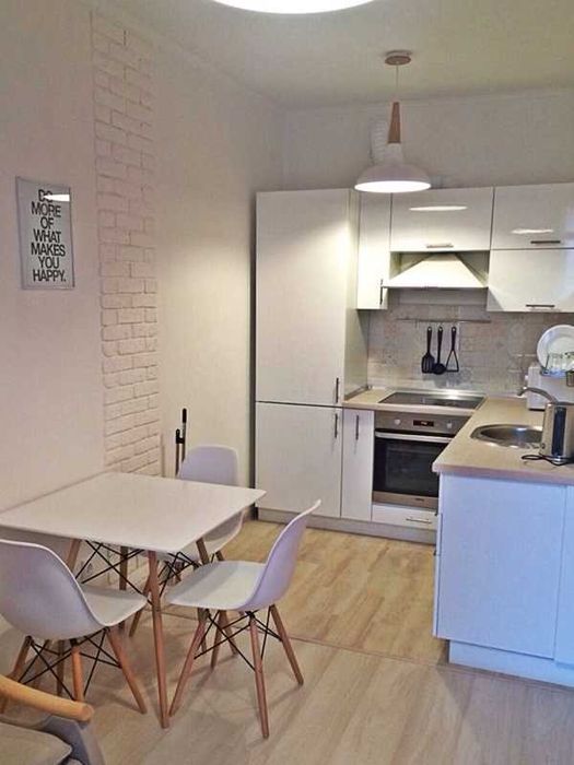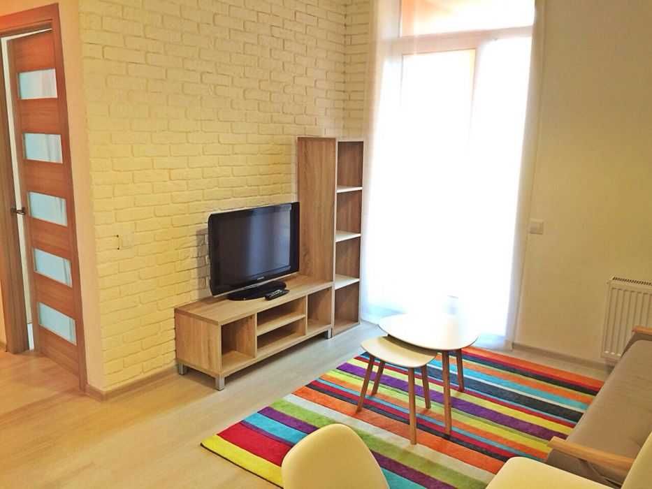 Інтер'єр виконаний у скандинавському стилі. Загалом передбачено до 4 спальних місць. Квартира повністю обладнана всім необхідним: як великою, так і дрібною побутовою технікою (зокрема пилосос, праска, прасувальна дошка). Встановлені лічильники на воду та опалення.