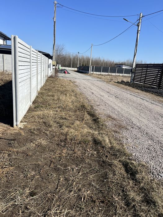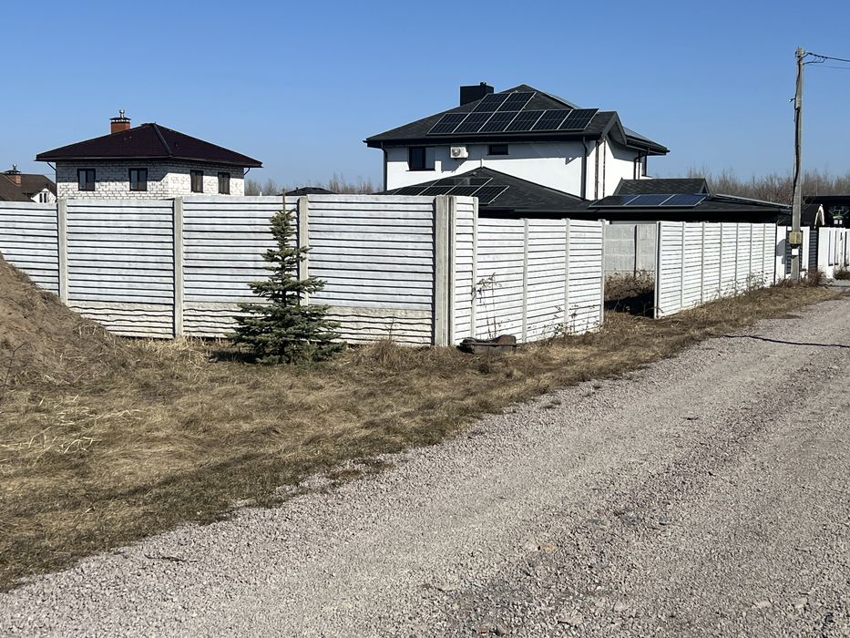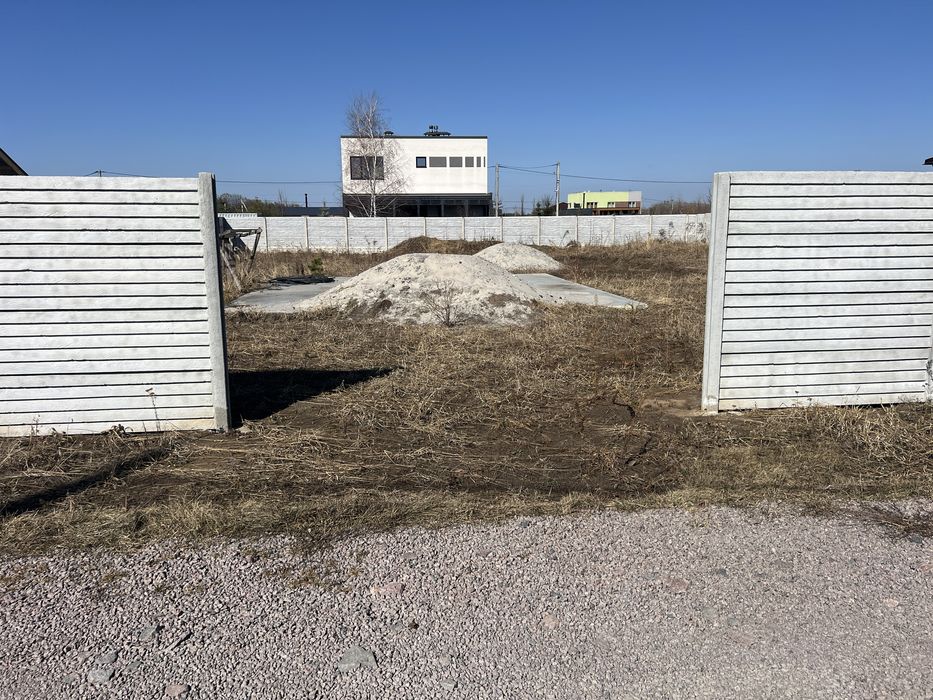 Огорожа у вигляді бетонного євро-паркану з усіх сторін, залишили проїзд/місце для встановлення розсувних воріт -4метри.