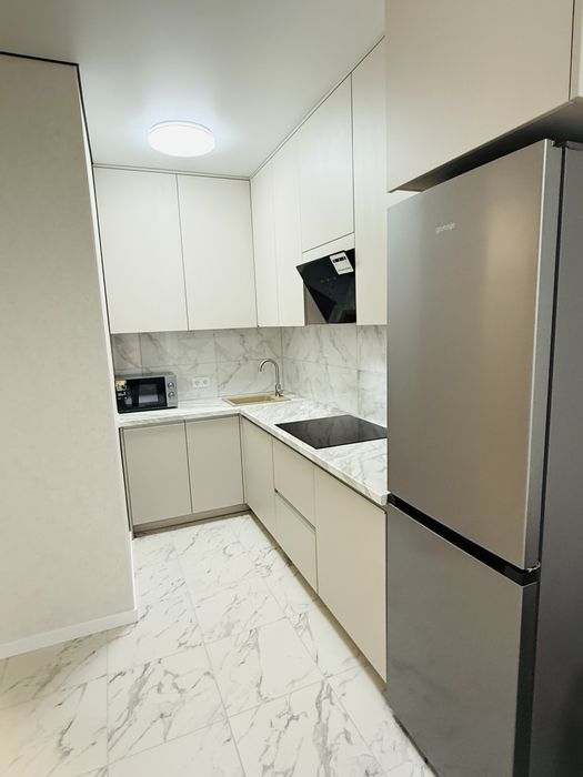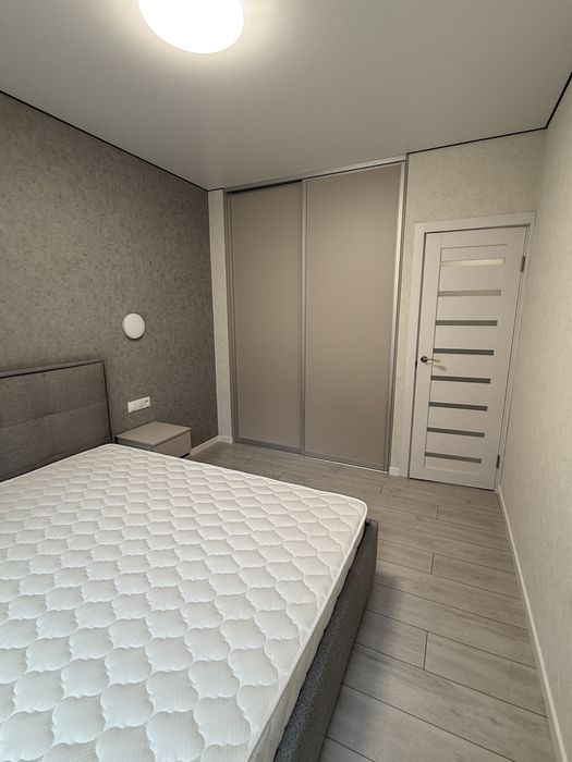 Квартира повністю готова до проживання та укомплектована меблями та технікою. В кімнаті знаходиться двоспальне ліжко з нішою для зберігання та прикроватними тумбами та вбудованою шафою для одягу. В самій кімнаті додатково зроблено шумоізоляцію стін.