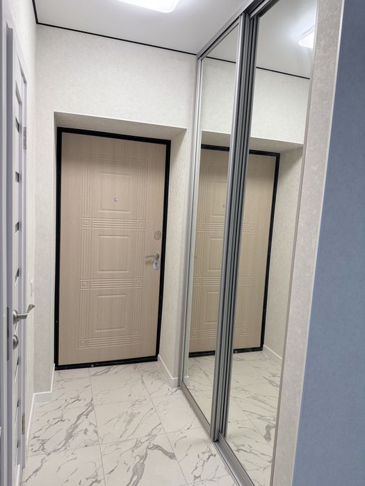 В коридорі розташована вбудована шафа для верхнього одягу з дзеркалом.