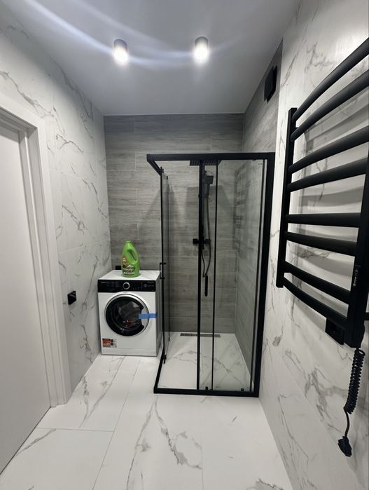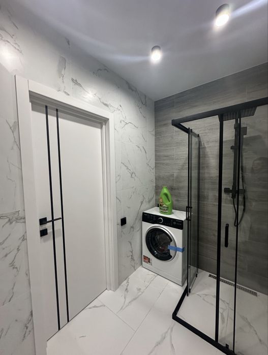 * простора душова зона зі скляною перегородкою