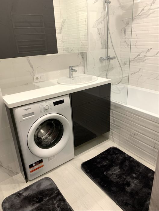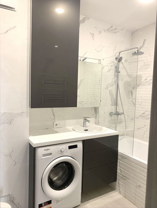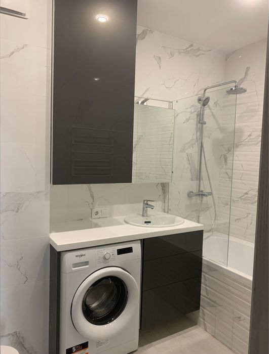 Ванна кімната: ванна+душ, с/в, пральна машина, пенал для зберігання речей та засобів для прибирання/прання, сушилка для рушників, тепла підлога.
