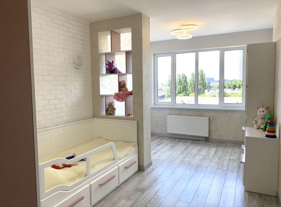 Спальня, повноцінна дитяча з великою шафою на всю стіну (нажаль, на фото не видно, але вона дуже в містка)